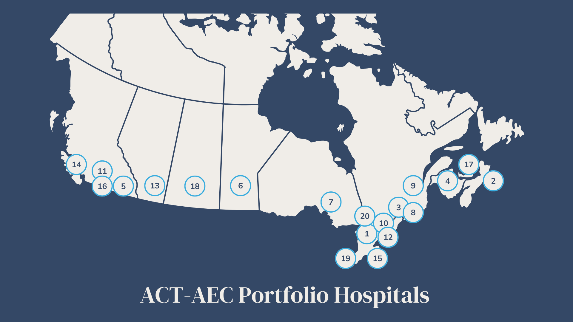 These sites were chosen from across Canada in a competitive process that considered site research ability, geographic location, and motivated physician champion(s). At each Portfolio Hospital site, ACT will be funding the equivalent of 1.0 FTE x 3 years Research Coordinator to assist with enrolment in ACT network trials. Each Portfolio Hospital was presented at the ACT Fall Meeting and we hope that trialists continue collaborating. The attached document includes Portfolio Hospital name, location, and Physician Champion(s).